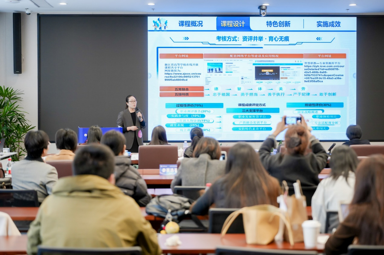本次大赛由浙江省教育厅、浙江省人力资源和社会保障厅联合主办,紧扣“规划未来·成就梦想”主题,吸引了全省73所高校的教师同台竞技,竞争尤为激烈。我校参赛团队立足学校办学特色与人才培养目标,精心打磨参赛课程,以“安全价值观引领下的生涯教育体系”为核心,系统展示了课程建设的创新思路、扎实积淀与显著的育人成效。在决赛的教学展示与现场答辩环节,主讲老师清晰阐述了如何将安全价值观有机融入生涯教育,构建具有安防特色的生涯发展指导模式,其前瞻性的理念、丰富的教学实践与扎实的育人成果得到了评委的充分肯定。