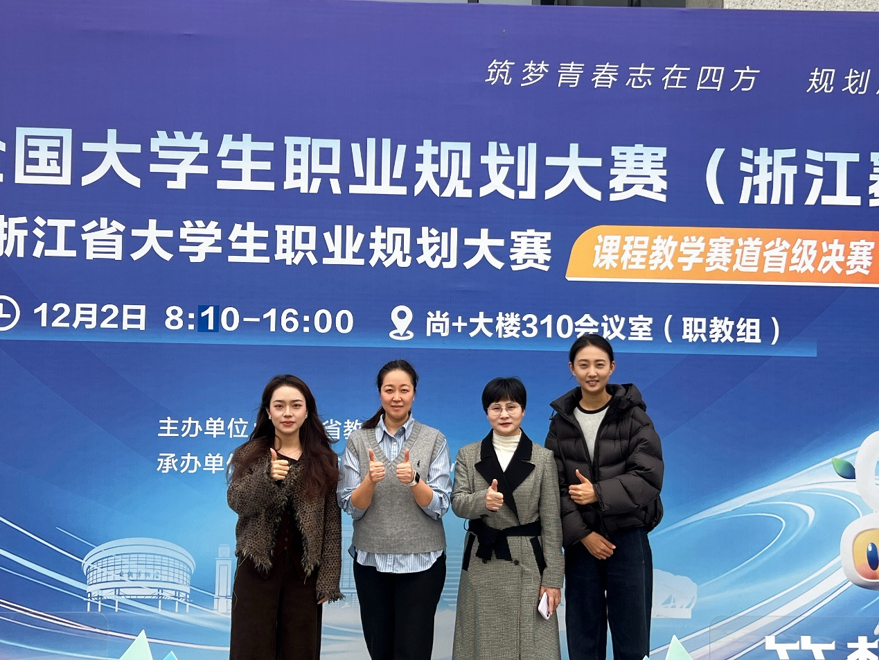 近日,第三届全国大学生职业规划大赛(浙江赛区)暨第十六届浙江省大学生职业规划大赛课程教学赛道决赛在杭州圆满落幕。我校马克思主义学院(公共基础学院)生涯发展教研室选派丁久萍老师(主讲)及其团队成员(胡伟国、陈秀娟、张玲玲、陈曼曼、陈双双)组成的教师团队,凭借深厚的教学功底、创新的课程设计与精彩的现场发挥,在激烈竞争中脱颖而出,最终以职教组全省第五名的优异成绩荣获银奖,实现我校在该项赛事课程教学赛道上的新突破。